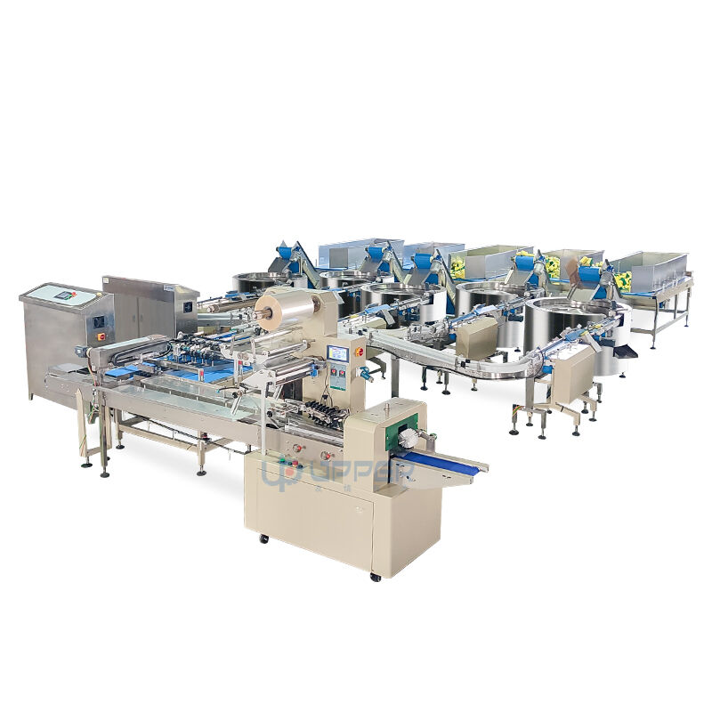 Linea completamente automatica per il confezionamento di alimenti per biscotti, cupcakes, paste dolci e pasta sfoglia, con conteggio automatico, alimentazione e confezionamento