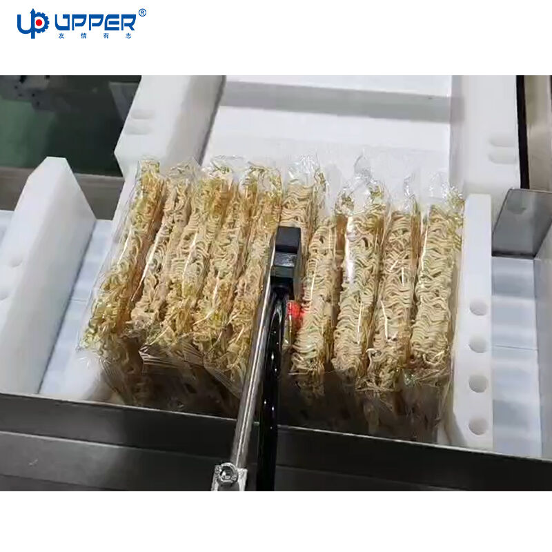 이것은 인스턴트 누들을 위한 자동 백킹 및 실링 기계입니다. 원료는 컨베이어 유닛을 통해 봉지 입구 장치로 이송되며, 이후 포장이 열리고 원료가 내부에 넣어진 후 밀봉됩니다. 다양한 종류의 빵, 슬라이스 토스트, 타월 등 복합 소재의 1차 또는 2차 포장에 적합합니다.