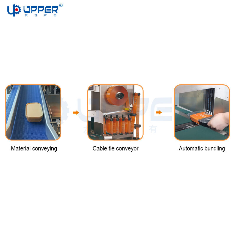 Dit is een volledig automatische vacuümvoedingsbandmachine. Deze kan materialen automatisch bundelen en wordt veel gebruikt in sectoren zoals voedsel, industrie en hardware.