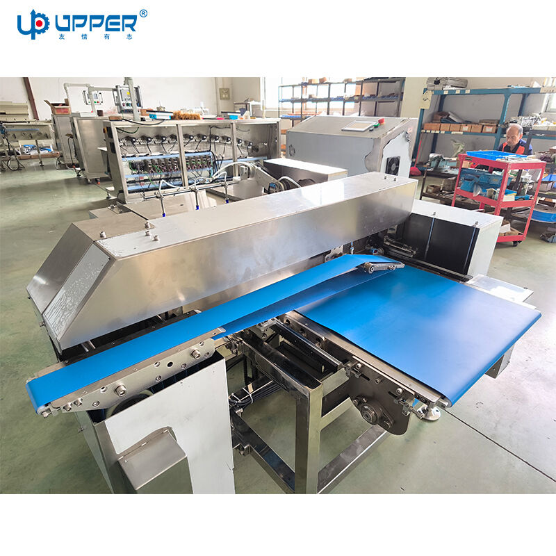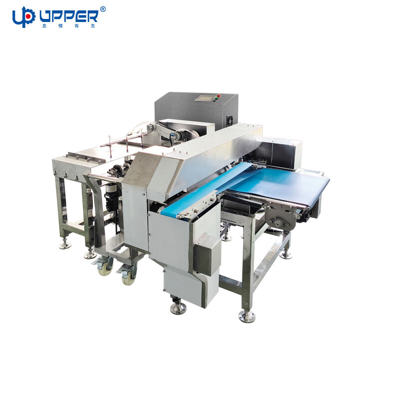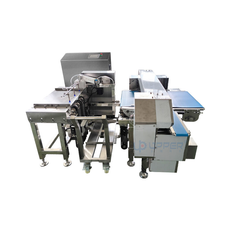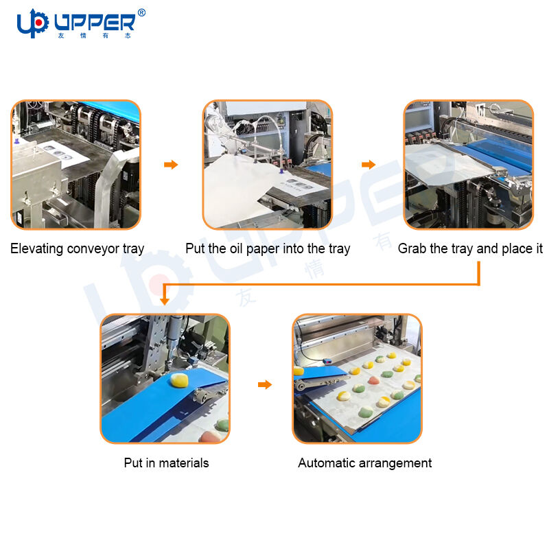 Đây là máy tự động nạp và sắp xếp bánh trung thu vỏ băng vào khay. Máy được trang bị cảm biến tiệm cận quang điện, có khả năng tự động đếm và sắp xếp nguyên vật liệu. Phù hợp cho việc xếp chồng và sắp xếp tự động các loại thực phẩm nhỏ.
